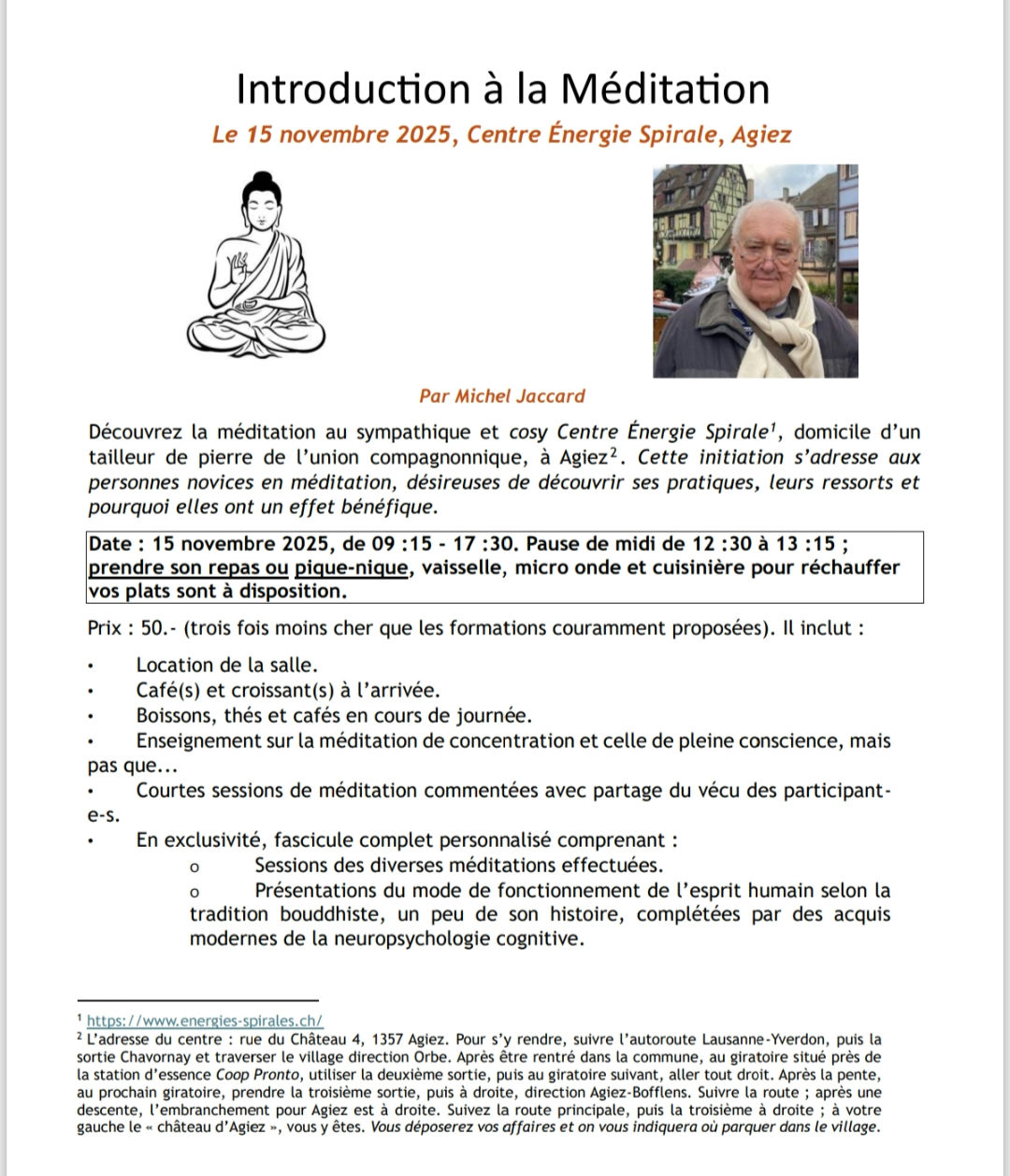 Evénements Séminaire à Agiez le 18 novembre 2024 au centre Énergie-Spirales sur le thème Initiation à l’astrologie par Michel Jaccard Présence au festival moyenâgeux du château de Grandson (CH, VD) les 12 et 13 août 2024: une grande affluence et pas moins de 35 consultations géomantiques données pour un prix très très promotionnel !
